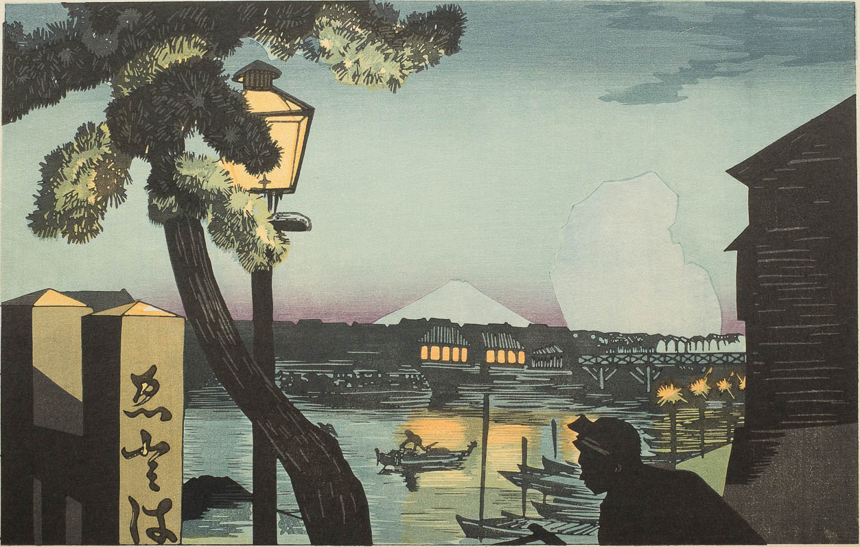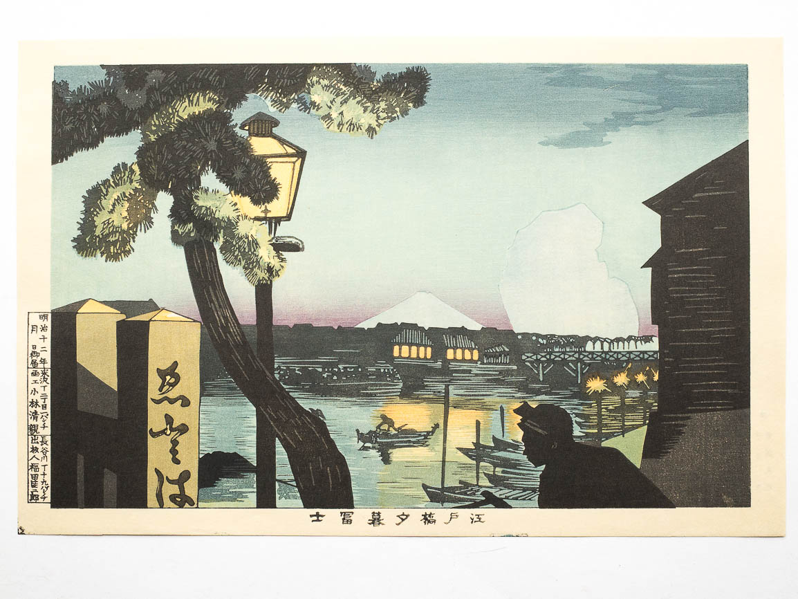 Title: “Mount Fuji from Edobashi bridge at Dusk” 江戸橋夕暮富士